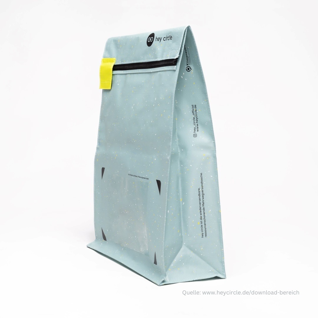 Mehrweg-Versandtasche „hey circle“ für den nachhaltigen Versand innerhalb Deutschlands.